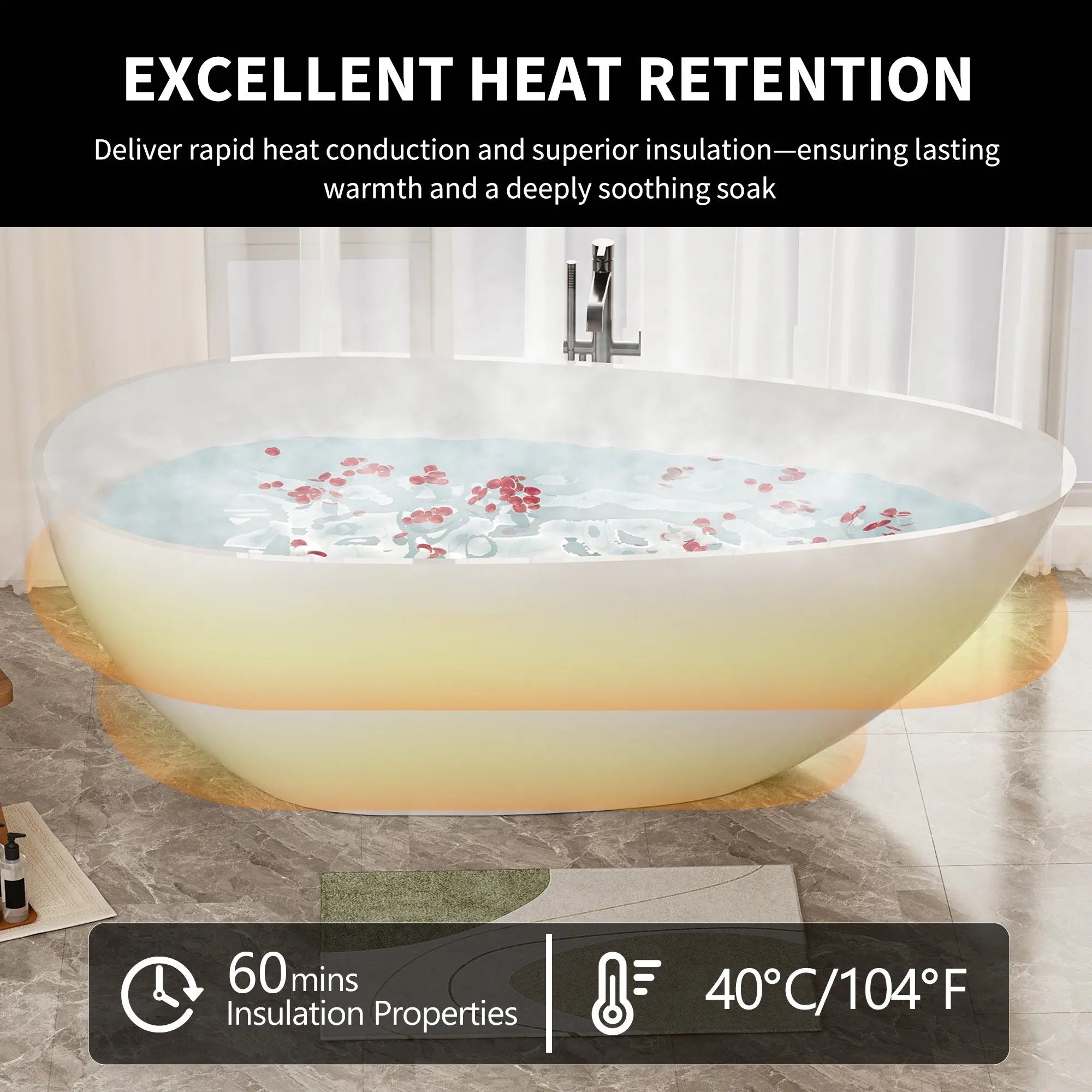 - NCL 59" Freestanding Stone Resin Bathtub Luxury Soaking Tubs - Glossy White