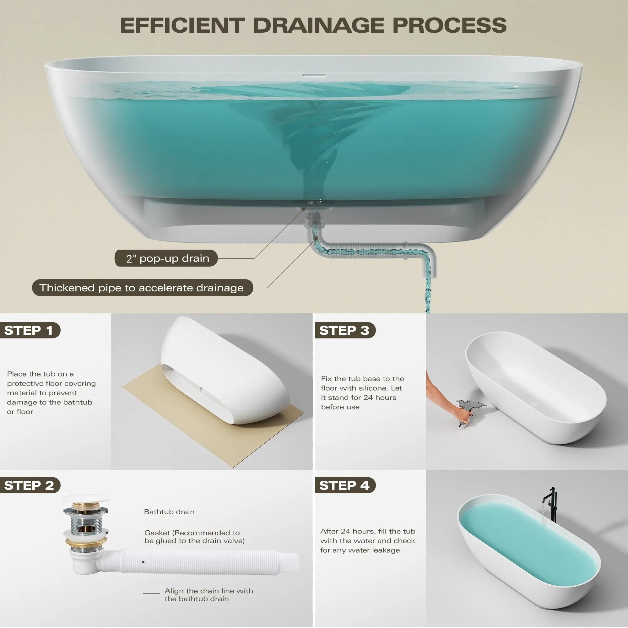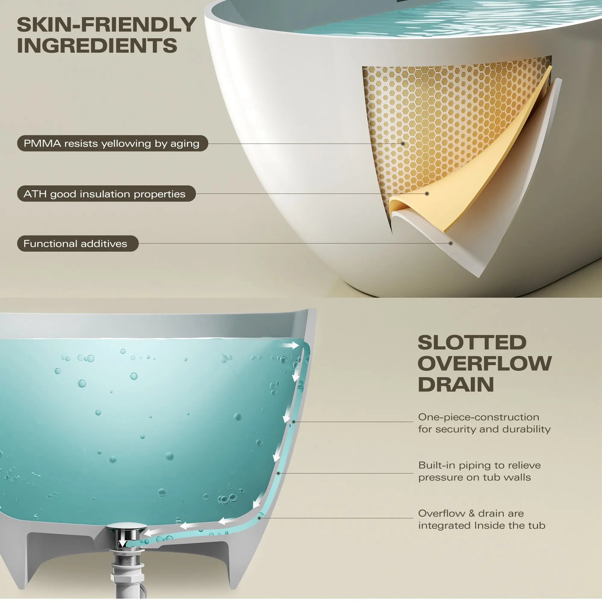 🔹Slotted Overflow: Allows for deeper soaking, ensuring a full, uninterrupted bath experience.