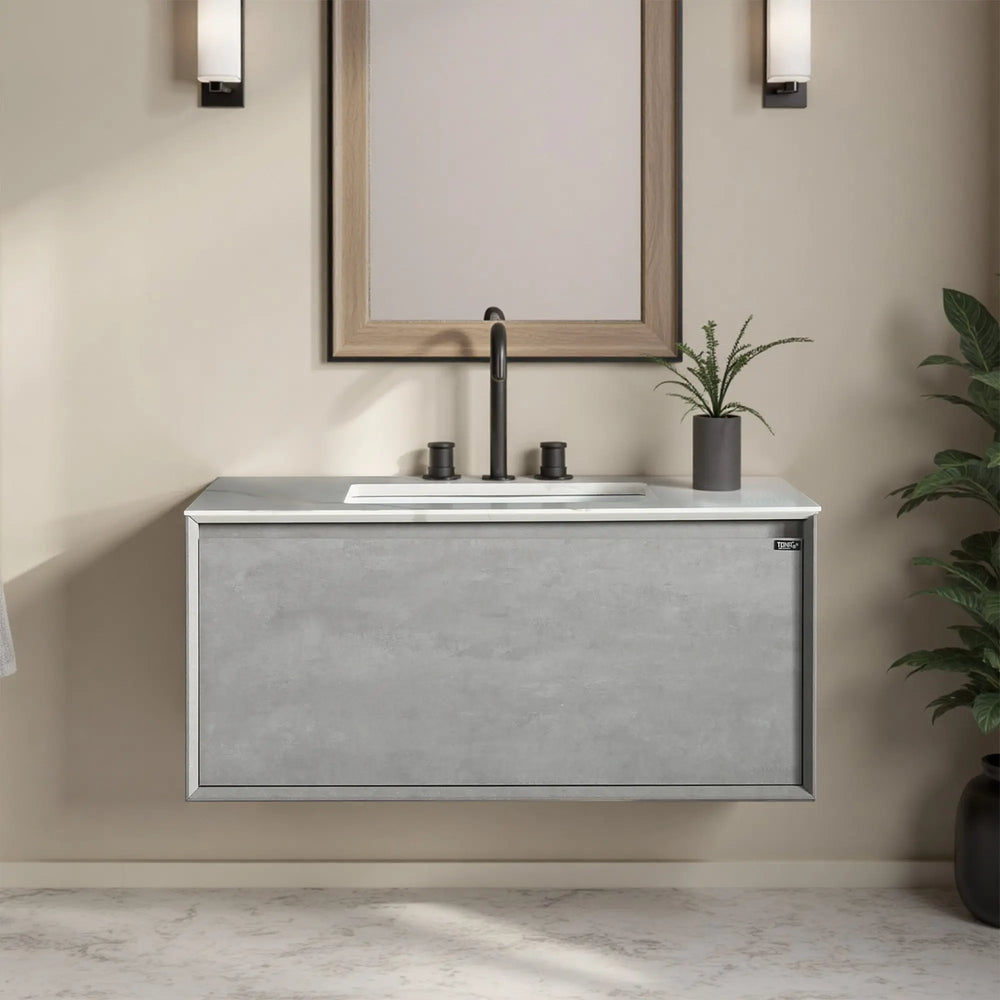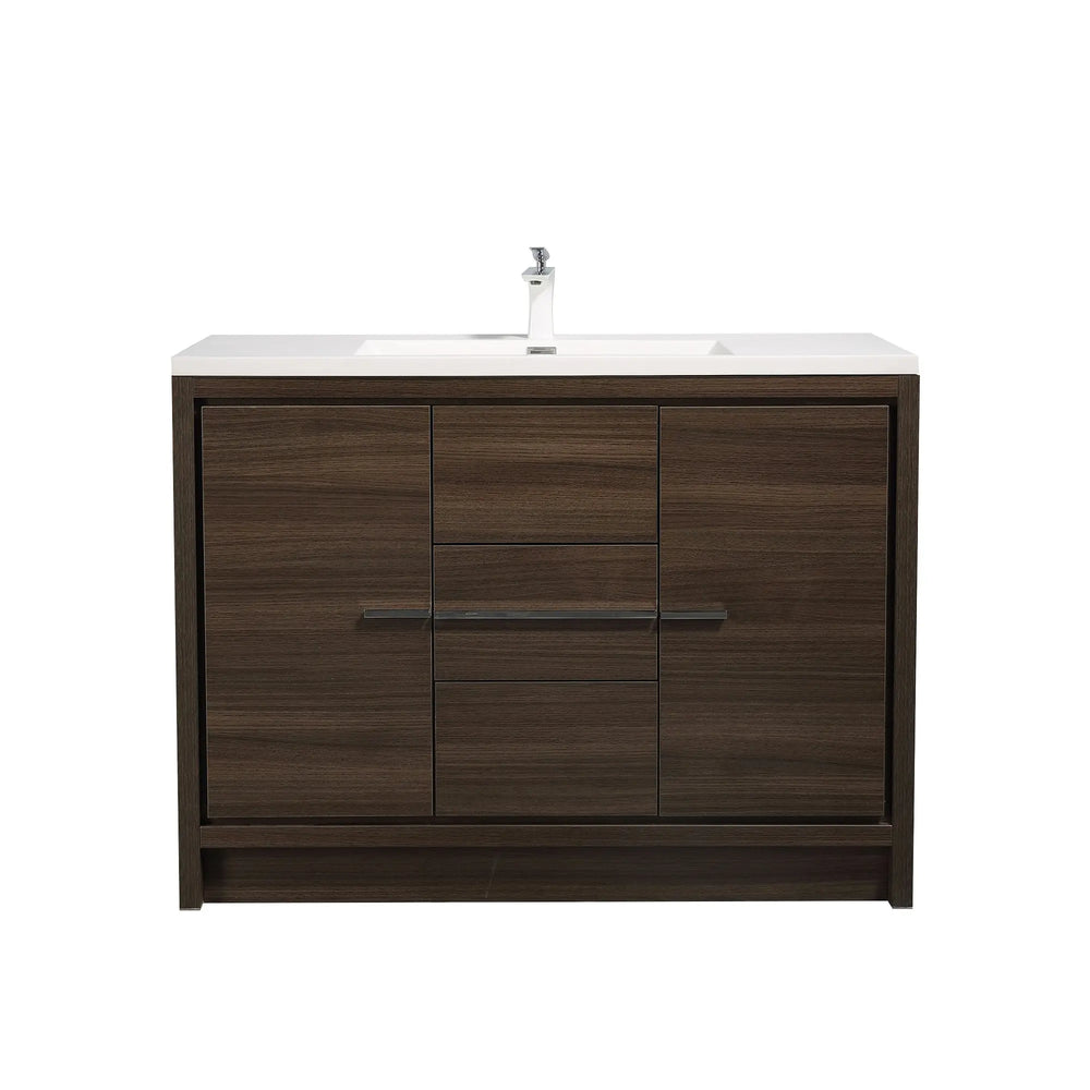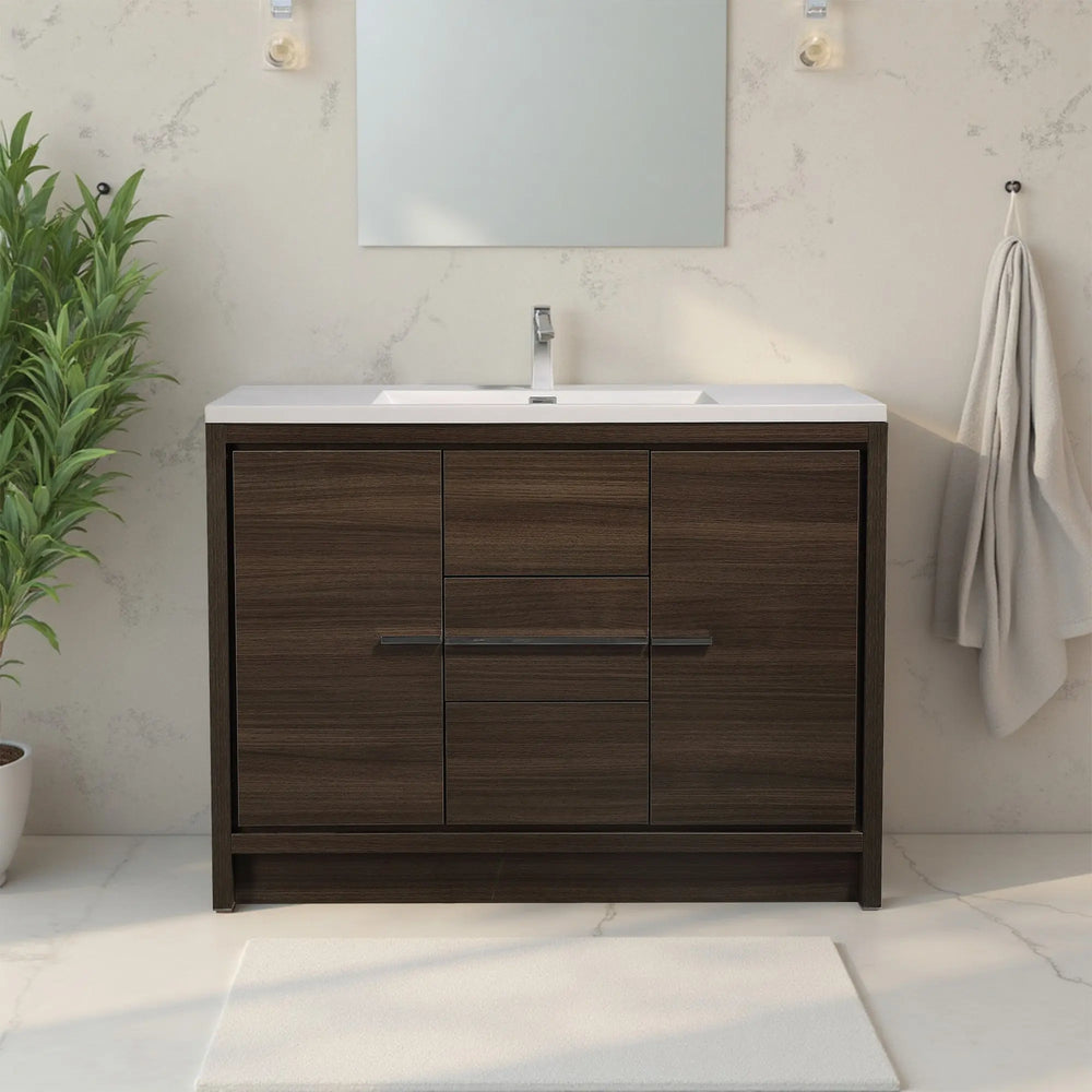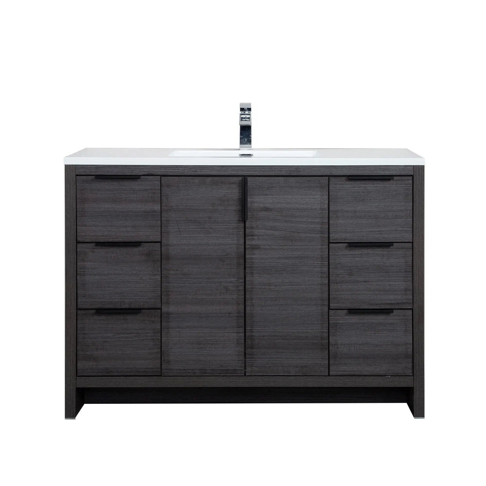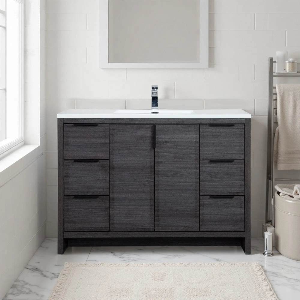 - Allen 30'' Freestanding Single Vanity with Solid Surface Basin, Cement Grey