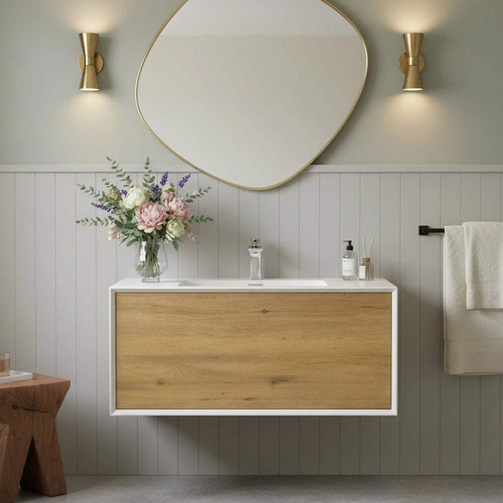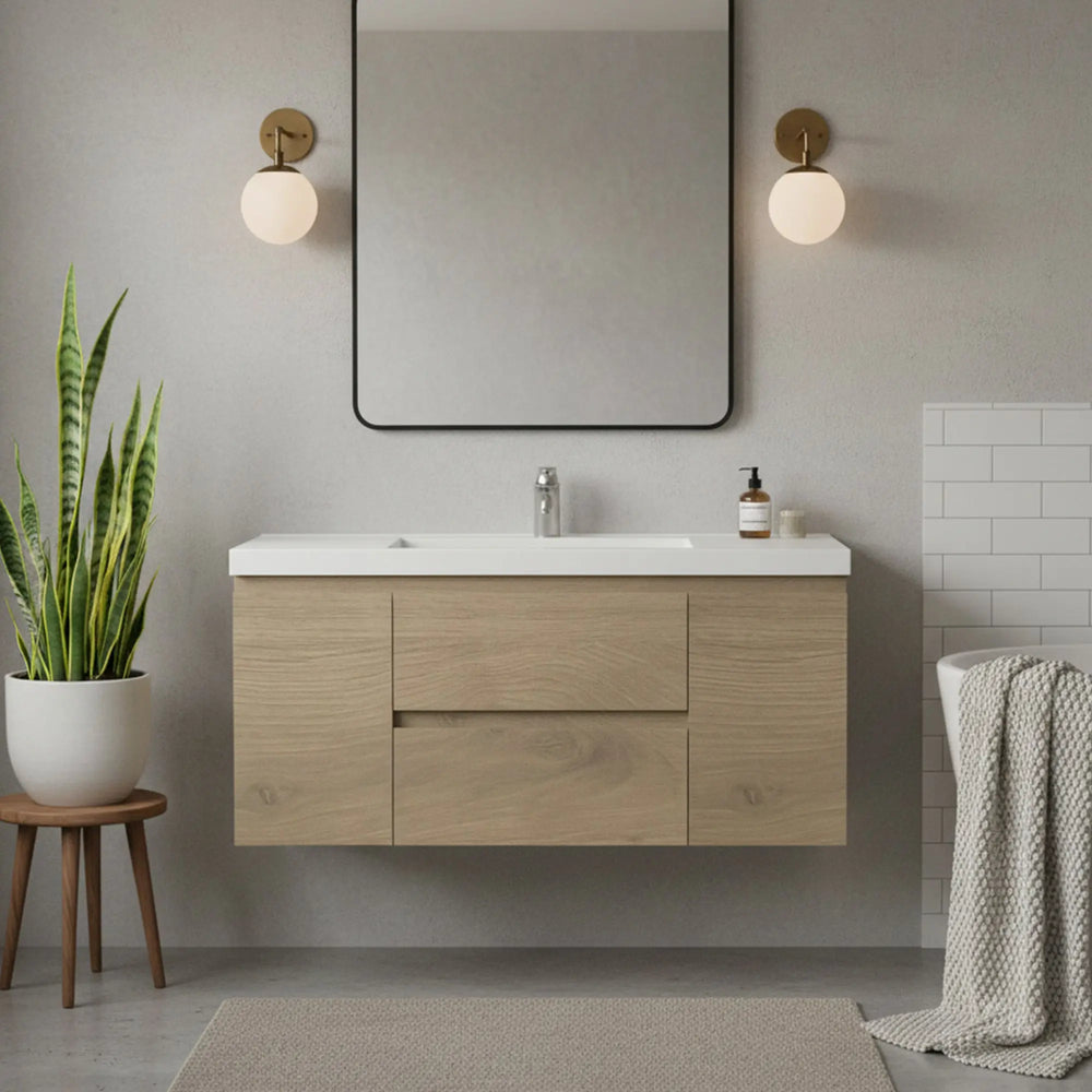 • Floating Modern Design – Light C.Ash finish with wall-mounted installation, creating a spacious, airy bathroom look.